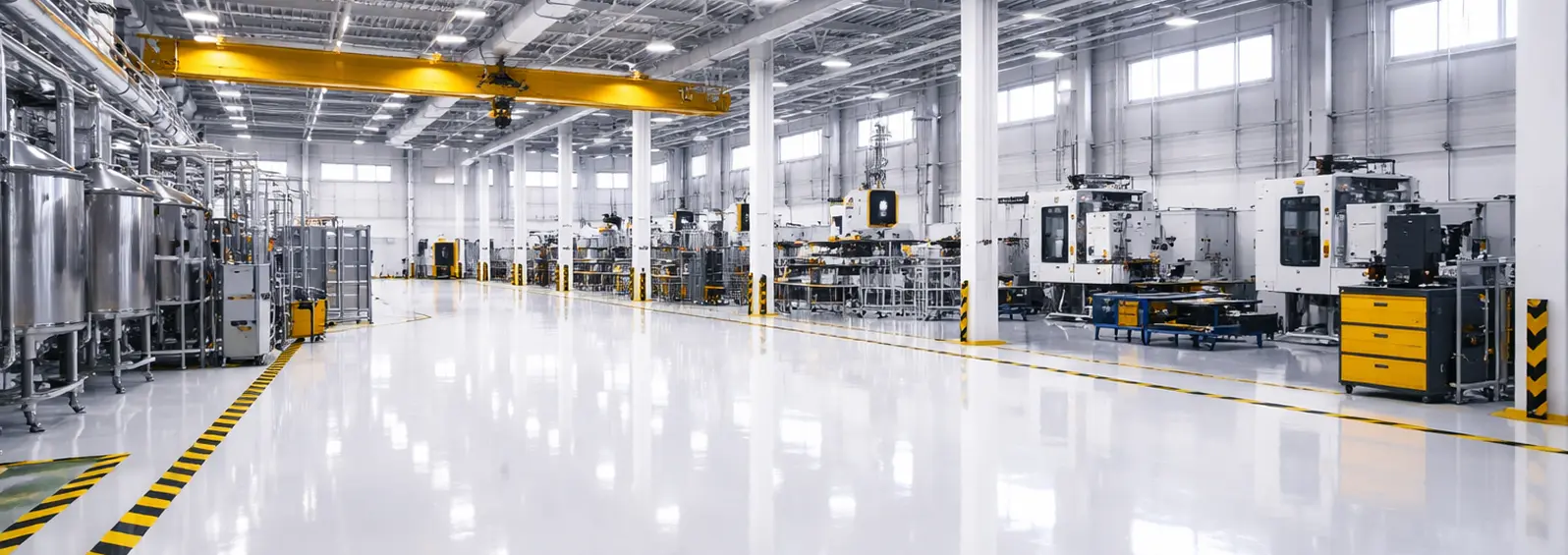 Chemical-resistant, heat-tolerant floor systems for production environments. We select resin formulations rated for the specific chemicals and conditions in your facility.